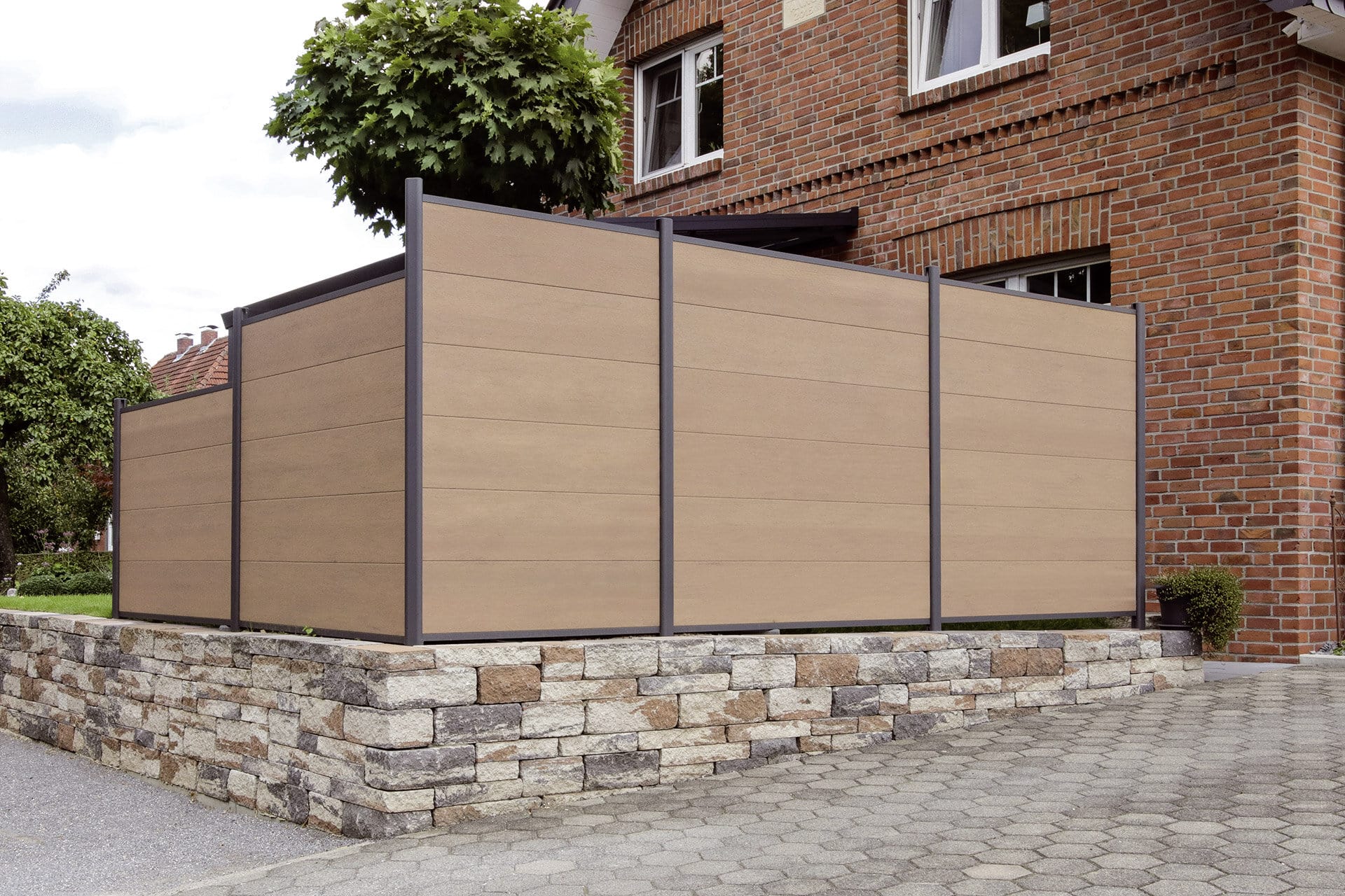 Zaunfeld-Set aus WPC-Einzelprofilen, Profilhöhe 30 cm, in den Farben Grau, Anthrazit, Sand und Mandel